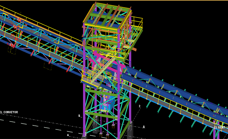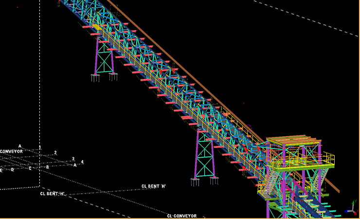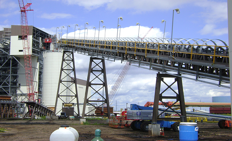 Coal Conveyor in Missouri. With a stair tower in the middle, handrail/walkways across both sides of the conveyor and a pull station module at the base. This project took approx 4 months to complete.